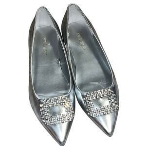 Nine West Jesike Pointy Toe Flats Silver Rhinestone Sz 8