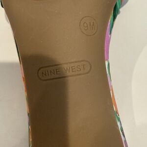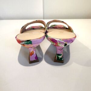Nine West Kitten Heels Luvlie Slide Slip On Sandal Pink Floral Square Toe 9M