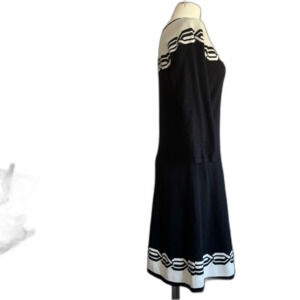 Knit sweater dress from Nine West with a chain motif. Black and off-white; cotton/acrylic blend.