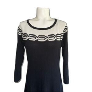 Nine West Knit Sweater Dress Black Off-White Small S