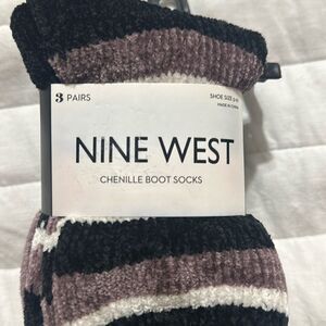 Nine West Ladies 3 Pk Chenille Boot Socks Ivory Black Mauve White Stripes