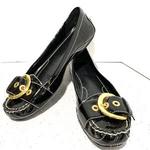 Nine West Lavetta 8.5M black patent driving loafers slip on shoes gold buckles