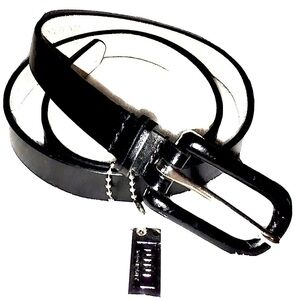 Nine West Leather Belt with Silver Logo Charm, S