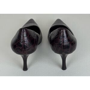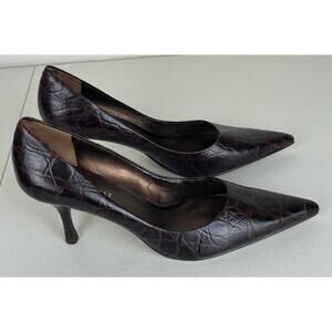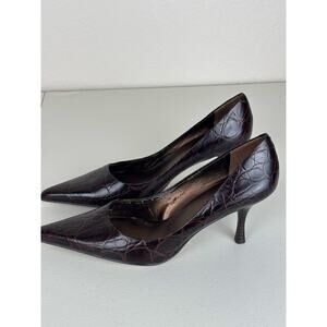 Nine West Leather Brown Crocodile Embossed Pattern Point Toe Size 7.5