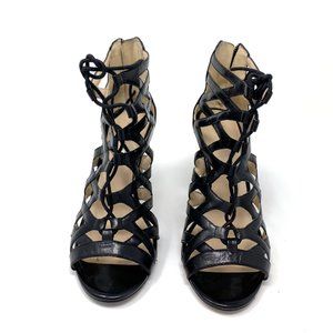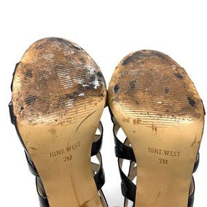 Nine West Leather Lace Up Caged Strap Heels Sz 7
