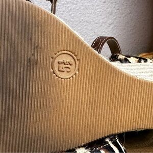 Nine West Leather Leopard Print Calf Hair Espadrille Wedge Sandals