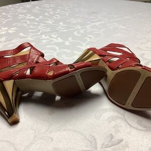 Nine West Leather Open Toe Heels LOOK AT THESE HEELS. STUNNING UNIQUE💃💃💃‼️‼️‼