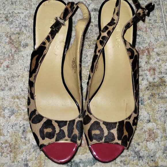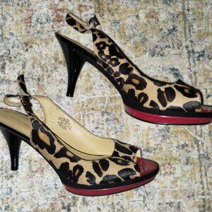 Nine West Leopard Slingback Leather Heels with Red Size 8.5