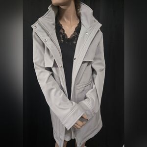 Nine West Light Gray Rain Trench Coat With Hood. NWOT never Worn