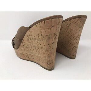 Nine West 'Likemer' Tan Leather Slip-On Wedge Sandal Women Size 10
