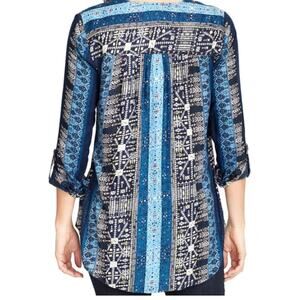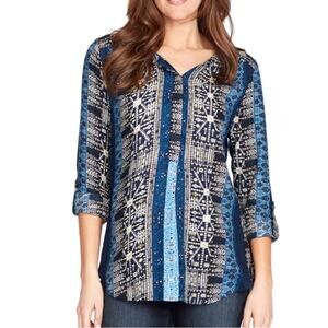 Nine West Lucy Top with 3/4 Length Roll Tab Sleeves (Poseidon) Size Medi…