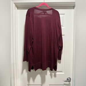 Experience the perfect blend of comfort and style with this Nine West red cardigan. Crafted from a soft knit fabric, this long-sleeve sweater features an open front design, making it an ideal layering piece for any occasion.