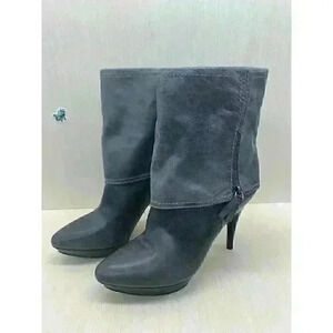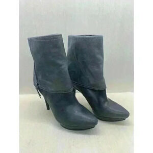 Nine West Matinee Women's Grey Leather High Heel Ankle Boots Fold Over Size 7.5M