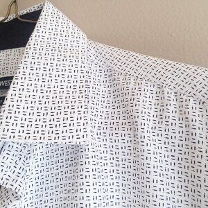 Nine West Men's Long Sleeve Dress Shirt M - Slim Fit White with Black Design NWT