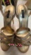 Chic metallic gold sandals with crisscross straps. Ideal for evening wear.