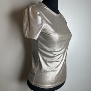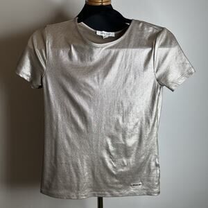 Nine West Metallic Ribbed Stretch T-Shirt XS Silver Brown Cybercore Y2K Top