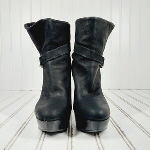 Nine West Midi Black Nubuck Leather Slouchy Pull On Platform Booties K277