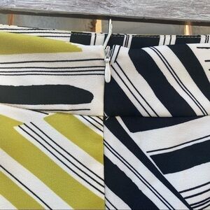 Geometric print, black, white and lime green colors
