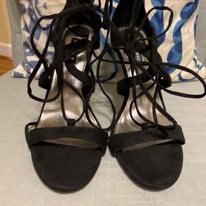 Nine West Mindi Ankle Wrap Heeled Dress Sandals Black Size 9