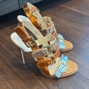 Nine West Mirror Strappy high heel Orange, Silver & Gold Sandals