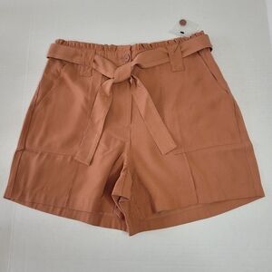 Nine West Mocha Frosting High-Waisted Paperbag Utility Shorts Sz M