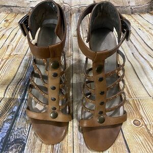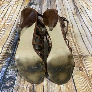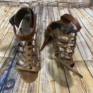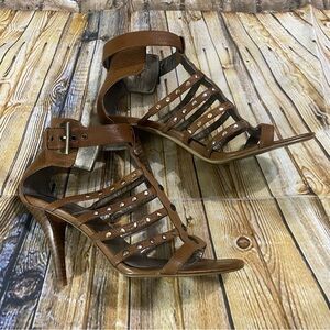 Nine West NWJAMIL Brown Leather 3 1/2” Gladiator Heels Size 6