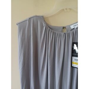 Keywords: Nine West blouse, gray blouse, sleeveless top, ruched blouse, keyhole top, stretch blouse, casual blouse, women's top, size M, viscose blouse, blouse top, summer top, career blouse, dressy casual, blouse