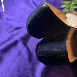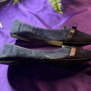 πNine West Navy Blue Leather Slip-on Flat Suede Comfy Loafers with Boa 10M