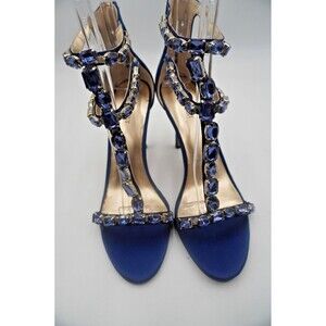 Nine West Navy Blue Satin Crystal Embellished Ankle Strap Evening Stiletto 9.5M