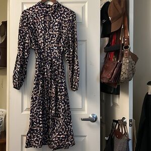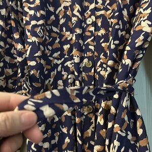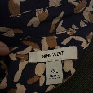 Nine West Navy, Cream and Brown Tan Print Dress XXL