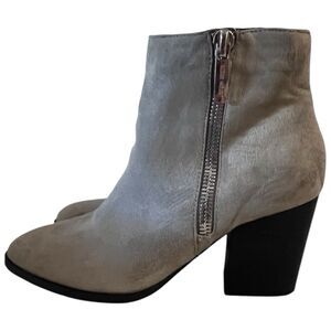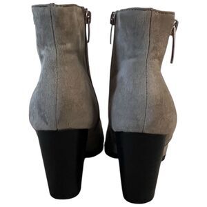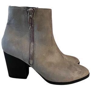 Nine West Neva2 Ankle Boot Gray/Taupe Suede 3”Heel Size 7M Double Zippers