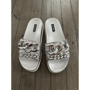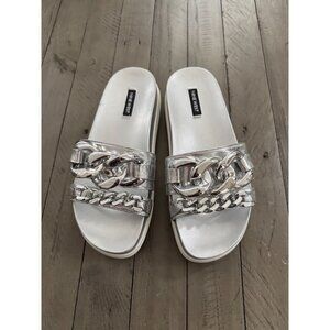 Nine West Nope 3 Chain Strappy Platform Silver Metallic Sandals Size 7.5
