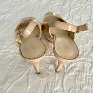 Nine West Nude Tan Patent Leather Platform Open Toe Slingback Heels Pumps 8M