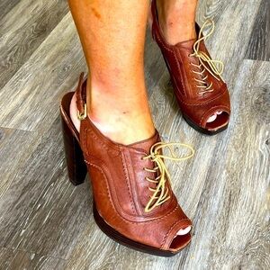 Nine West Nwondertoe peep toe leather platform high block heels size 10.5