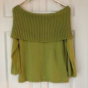 Nine West, Off the Shoulder Sexy Hip Green Sweater. Size Large, fits like a medium~