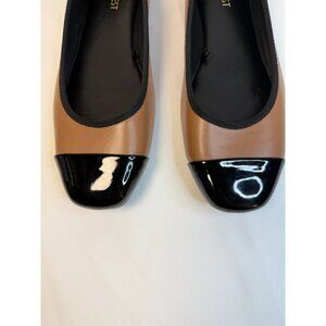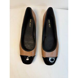 Nine West Ollin Womens Size 9M Light Brown Black Patent CapToe Ballet Flat Shoes