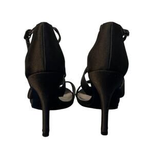 Step out in style with these elegant Nine West open-toe heels! Featuring a chic black color and a delicate flower detail on the front, these strappy heels are perfect for any occasion.