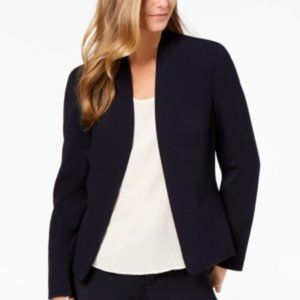 Styled with an open front, Nine West's collarless blazer has the perfect silhouette to layer over tie-neck tops of button-front blouses.