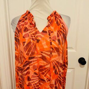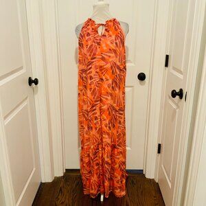 Nine West Orange Geo Print Halter Sleeveless Maxi Dress Large