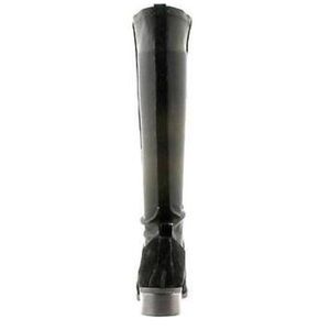 NWT Nine West Partay Tall Riding Boots. Black/Black Suede. Elastic back. Almond toe. Size 8.5. Slip on boots, no zipper. 14" calf circumference, 16.5" shaft, 1.5" heel. Will ship with original box upon request.