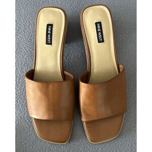 Nine West Pathi Women's Block Heel Sandals Tan Sz 10 M Pathi3 slip on NIB
