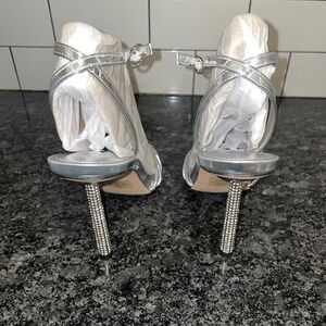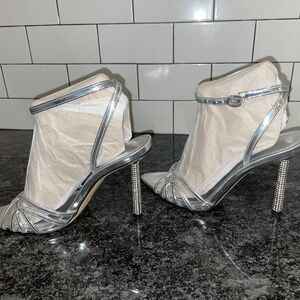 Nine West Paxal 3 Silver Ankle Strap Sandal Heels Women’s Size 7.5