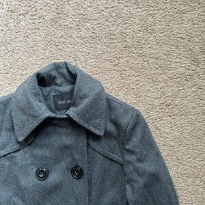 Nine West Pea Coat Womens 4 Wool Blend Notch Double Breast Grey