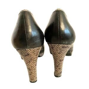 Nine West Peep Toe High Heel Pumps - "Chassy" Platform Shoes in US size 7M. These are black with a contrast black/gray moc croc trim. In excellent pre-owned condition - no damage or flaws. Very cute!