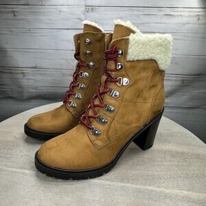 Nine West Peer Womens Sherpa Cuff Ankle Boot Size 8 Dark Natural Brown Heel Boot