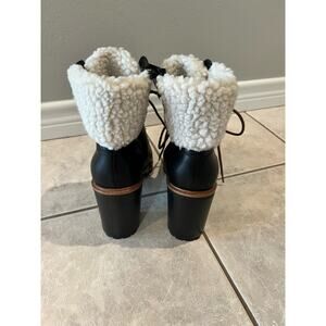 Nine West Penni Fur Booties/Lace Up Sherpa Combat Heeled Lined Women's Size 10M