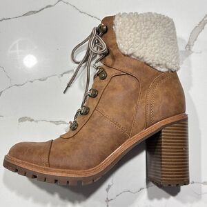 Nine West | Penni Women’s Brown Sherpa Lined Faux Leather Ankle Boots - Size 8.5