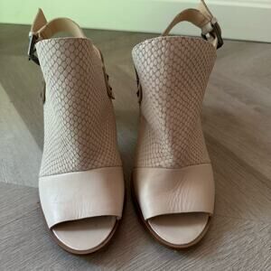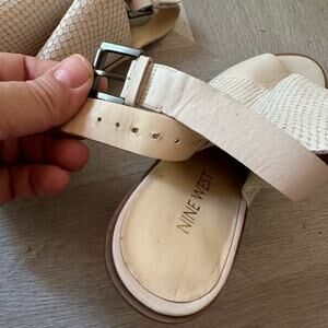 Nine West Pickens Leather Peep Toe Slingback Heels Sandals Shoes 9 9M Ivory Cream Block Heel Pebbled Leather
