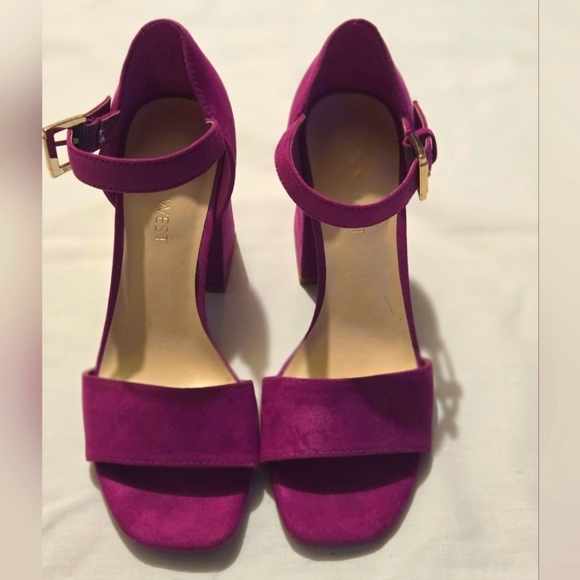 Nine West Pink Abrah Strappy Ankle Strap Block High Heels 6M.