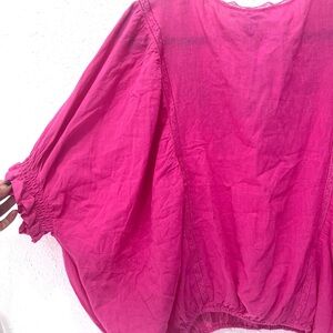NEW striking pink blouse from Nine West features a dolman sleeve design with 3/4 length sleeves, offering a relaxed and boxy fit. The neckline is beautifully embellished, adding a touch of elegance to its vibrant color. Perfect for making a bold statement, this top combines style and comfort effortlessly.